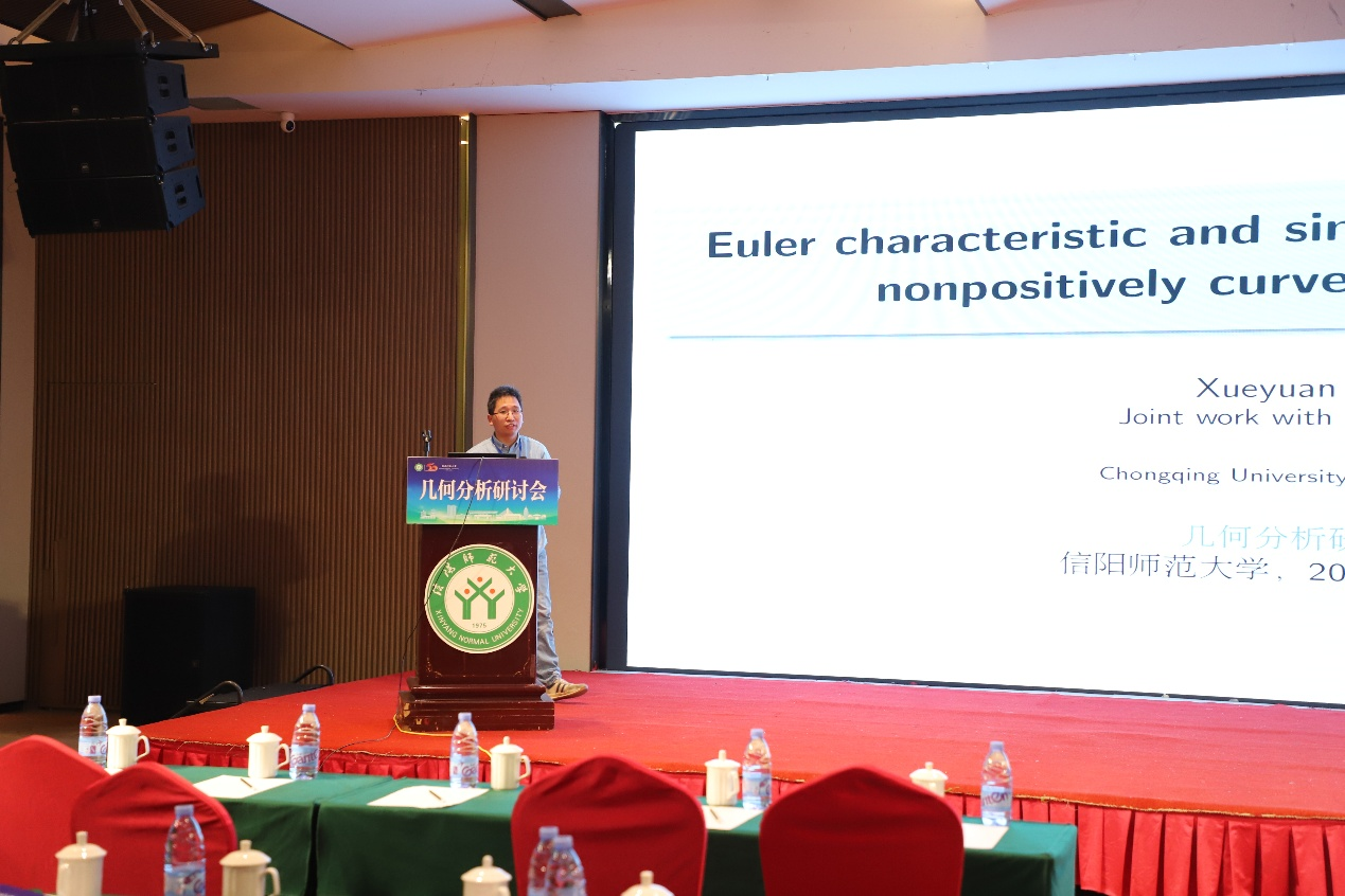 第六场报告由重庆理工大学万学远教授主讲,题为《Euler characteristic and simplicial volume of closed nonpositively curved four-manifolds》。本场报告由武汉大学徐旭教授主持。万教授在报告中指出,他证明了任何具有非零欧拉特征数的闭、非正曲率四维流形,其单纯体积均为正。这一结论证实了四维情形下格罗莫夫关于单纯体积正性的猜想。
