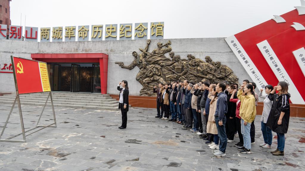 上午,全体成员首先在金刚台核心区进行现场体验式教学--“飞夺铁索桥”,重走红军茶谷小道。大家怀着无比崇敬的心情走进了商城革命历史纪念馆,今年正值商城起义90周年,在讲解员生动讲述下,重温历史故事,真切感受革命先烈为了共产主义远大理想、为了党的事业奋斗不息的伟大胸襟和无私情怀。党委书记王娟带领全体党员重温入党誓词,追忆峥嵘岁月,接受红色洗礼,铭记入党初心。在红军广场,全体成员参加提升课,时任商城县党史研究室主任涂白松以“金刚台红旗不倒与共产党人的大局意识”为题,结合“金刚台妇女排”一个个英勇事迹,为大家上了一场精彩生动的专题党课。